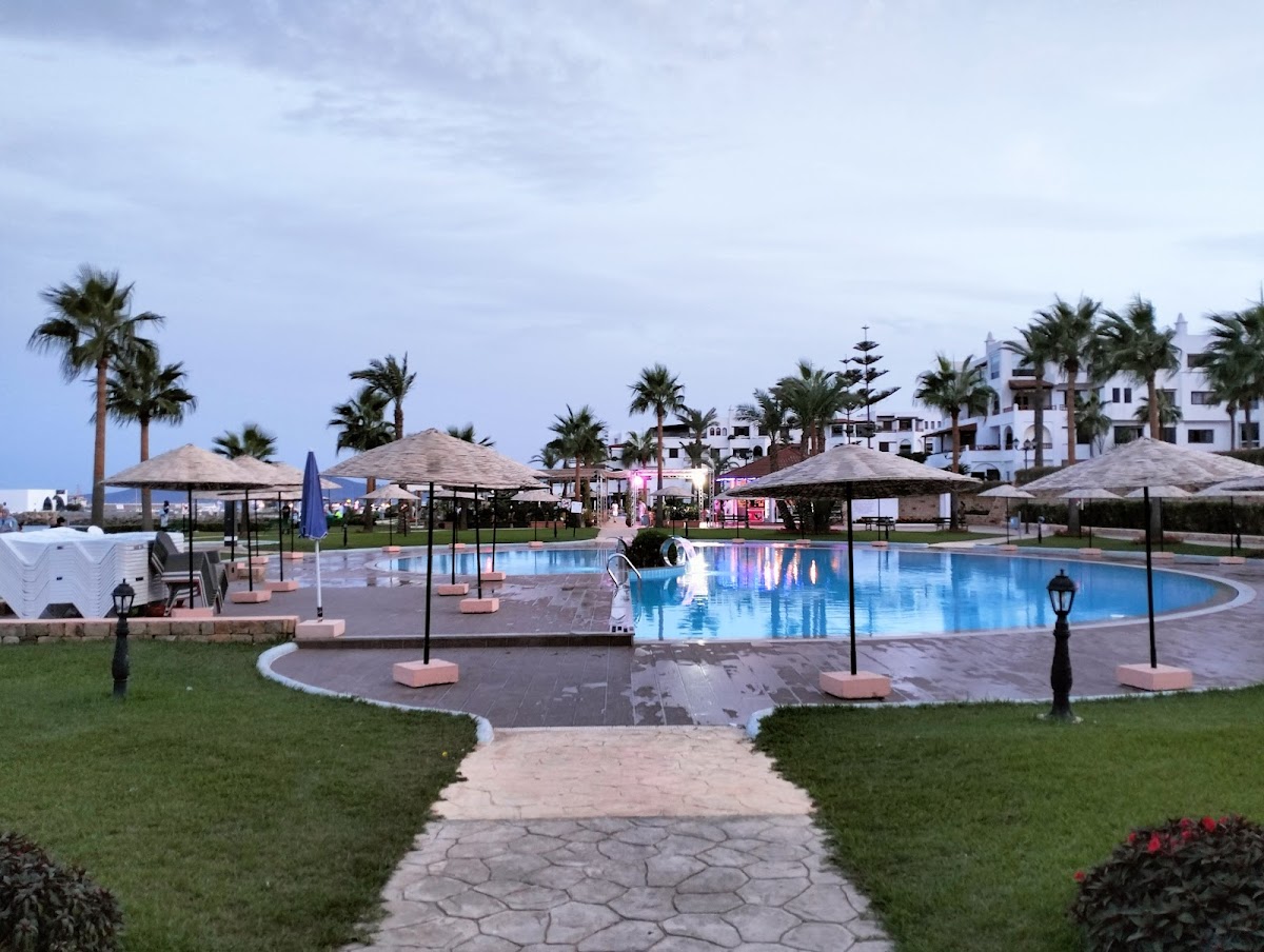 Awesome apartments, better than average in Morocco, clean cotton bed clothes and all necessary pots, fridge, oven, jacuzzi bath - awesome good for long stay with kids. At night there is beautiful fragrance coming from some kind of plants Food was good in the restaurant near to the pool. Pool is full of kids, but seems clean. Unfortunately they closed one of two swimming pools so it was quite crowded. Clean, calm, nice